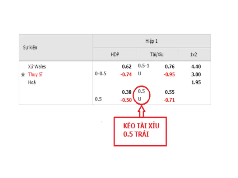 Kèo tài xỉu 0,5 trái còn được biết đến là kèo chấp nửa trái